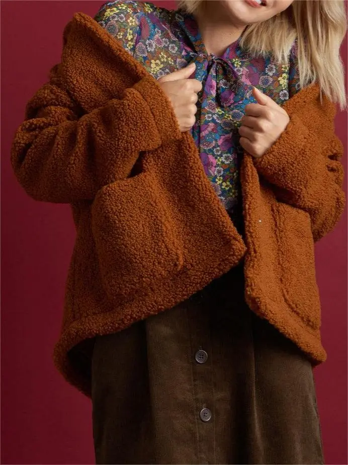 Made from a plush sherpa fabric and boasting front snap-button closure, handy front patch pockets, long sleeves, and a snuggly hood, this adorable, fully-lined teddy coat will become the outerwear you never want to take off.